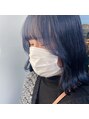 ブリーチ履歴なのを活かして鮮やかブルーブラック屋内では黒っぽく、光に当たるとブルー感強め!顔周りのレイヤーカットで巻きやすく!韓国ぽく!