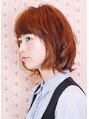 フワフワとした質感が可愛いボブスタイル☆パーマは、弱酸性デジタルパーマで柔らかい曲線をプラス!!カラーは、フワフワ感ピッタリのアッシュオレンジ♡フェイスラインにハイライトをプラス!!