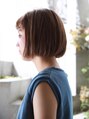 肩上の短すぎないナチュラルワンカールボブ。短めに抵抗がある方にもおすすめのスタイルで耳かけやアレンジも自在。伸ばしかけの方も◎。透けるような髪質は透明感を残して弱酸性カラーをすると◎色落ちしやすい、黄色くなりやすい方にもおすすめ☆