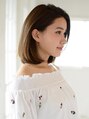 手触りも見た目もやわらかなストレートミディアム。毛先が自然に内に入るようにカットし、重めだけど風にゆれると表情を変える、可愛らしいシルエットに。カラーはツヤのあるベージュ系で透明感を出して
