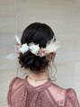 成人式や結婚式におススメのルーズアップシニヨンです。トップは艶感を出して上品な印象に、シニヨンは緩くボリュームが出るように引き出すことで華やかに仕上げました。顔周りはおくれ毛を出してカジュアルな動きを!トラックオイルで一日保湿してくれます