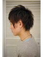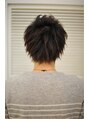 片方のサイドは逆Vの字に刈り上げて耳周りすっきり!トップの根元に短い毛を作り立ち上がりも楽々♪