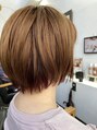 スッキリ軽めのショートヘアに、インナーカラーを入れました。表面は明るいアッシュベージュ系に、インナーは濃いめのピンクカラーで染めました(^^)ショートヘアでも気軽にインナーカラーを楽しみましょう☆