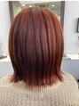 郡山駅前美容室リジョイスヘアの蒲生です☆ ボブスタイルにしっかりオレンジカラーです(*^^*)ブリーチはしていません。暖色好きな方、色味がしっかりした方がお好きな方はぜひお試しください☆