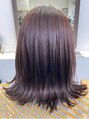 郡山駅前美容室リジョイスヘアの蒲生です☆ ツヤカラーのピンクヴァイオレットブラウンです(*^^*) 伸ばし中で肩につく長さなので、外はねで仕上げてます(^O^)