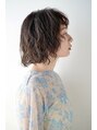 顔まわりにレイヤーが入ったボブにランダムな動きがでるように全体的にパーマをかけたスタイルです。カラーはラベンダーカラーでツヤを出します。