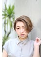 前下がりのショートボブです!あえて重さを残してカットしています。襟足は刈り上げしないぎりぎりの長さでカットしています。後頭部にポイントを持ってきているので、頭の形もよく見えるスタイルです!カラーは8、5トーンのアッシュベージュです。