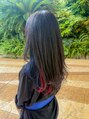 左サイドだけブルーと赤のインナーカラーがとても可愛い☆ロングレイヤーのスタイルです☆レイヤーからちら見えするインナーカラーがとてもGOOD♪