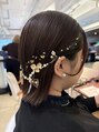 肩くらいの長さでしたので外ハネにセットし、髪飾りや金箔で華やかにしてみました。シンプルですがオシャレで可愛かったです◎#札幌美容室 #ヘアセット #札幌ヘアセット #外ハネ #結婚式ヘアセット #金箔
