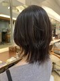 肩に当たる長さを活かした外ハネボブ。重さを残しつつ、毛先だけ軽く動くようにカットすることで、乾かすだけでも自然にハネるデザインに仕上げました。スタイリングはオイルやバームを毛先中心につけるだけでOK。