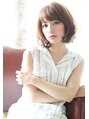 夏にオススメのボブディスタイル☆全体的にレイヤーをいれてひし形シルエット。セミウェットヘア、シースルーバングも相性◎ウェイトのバランスを似合わせカットで調整。全体はシフォンアッシュで柔らかな印象に。毛先をランダムカールにして上質な女性に。