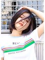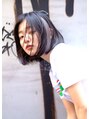 暗くしないといけないけど、普通の黒にはしたくないという方にオススメのカラー。ぱっつんボブで首回りに軽さを出すので暗くしても重くならない。光に透けるとうっすらとブルーが出るがポイント☆