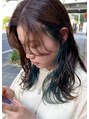 インナーカラーに、深めのモスグリーンを大胆に入れたデザインカラースタイル。ワンカラーに飽きた方や、いつもと違うヘアスタイルに挑戦してみたい方にオススメです!インナーカラーがしっかり効いているので、簡単にスタイリングが決まるのも魅力的です◎