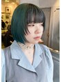 深みグリーンのカラーに顔まわりはブラックのインナーカラーで小顔効果up◎フェイスレイヤーを入れることで、一気にオシャレ感もでます!