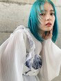 程よく顔まわりにフェイスレイヤーを入れて小顔効果を演出。細かく毛量をスライドカットで調整してるから広がりやすい髪質も◎です。上品な水色はミックスカラーで作っています。