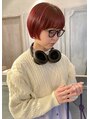襟足ギリギリでカットして首元がスッキリ見えるヘアスタイルで、ヘッドホンなどの小物とのバランスもバッチリです!人気なワインレッドカラーでモード感もプラス☆