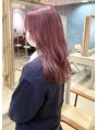 髪質や状態に合わせてしっかりブリーチすることで、黒髪からでもできるカラーの幅は広がります◎彩度高めのピンクカラーは、モノトーンの服に映えてオススメです!