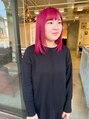 ぱっつんとした質感よりも、やや軽めのレイヤースタイルです。全体にややバイオレット気味のピンクを入れることで髪の黄色味をしっかりと飛ばして長持ちするピンクが楽しめます♪