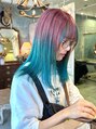 ピンクとシアンの組み合わせが個性的なデザインカラースタイル。好きなカラーはもちほん、イベントに合わせて推しカラーを組み合わせるのもオススメです♪お色味によってブリーチの回数も変わりますので、まずはしっかりカウンセリングいたします◎