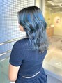 ハイライトの履歴を活かしたデザインカラースタイル。ハイライトの部分に鮮やかなブルーを入れて、ブラックとのコントラストでメリハリのあるスタイルに♪#レイヤーカット#ボブ#髪質改善#縮毛矯正#インナーカラー#酸性ストレート#顔周り