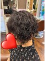 襟足はコンパクトに収めつつ前下がりにカット!全体にスパイラルパーマをかけてメリハリのあるスタイルに♪ムースなどで簡単にスタイリングできます!大人かわいくもかっこよくも決まります!