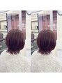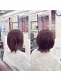 レイヤーが入った肩くらいの軽めのボブスタイル。カラーは白髪染めの明るめを使用しています。仕上げにバームワックスで束感を出すとGOOD!!