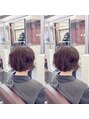 1ヶ月前にかけたパーマを活かしたボブスタイルです。ムースをつけただけで再現できるよう、Aラインのような重さをなくし、軽めにしています。ワックスorムースをつけてドライヤーで揉み込みながら乾かして完成。
