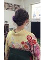こんにちは♪川越駅 川越西口 川越美容室サロン・ド・クラフトの澤田拓己です!!【卒業式】袴お着付けの素敵なお客様!!黄色いお着物に緑色の袴がとっても可愛い袴スタイルです♪ヘアスタイルはふわふわ毛束のルーズなシニヨンスタイルです♪