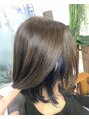 ボブスタイルのネイビーインナーカラー