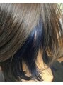 - 【インナーカラー】カット+デザインカラー+トリートメントインナーはブリーチ後にネイビーブルー塗布