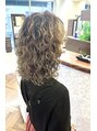 髪質、生え方、骨格に合わせてミドルレイヤーにベースカット14ミリ~9ミリのロッドをランダムにレンガ状に根元まで巻き納めて行きました。レザーで質感調整をしてオイルなどのケア剤で仕上げました。