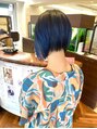 髪質、生え方、骨格に合わせた前下がりボブをベースに襟足から耳中線まで刈り上げました。全体的に軽い質感を作る為スライドカットで質感を調整しました。