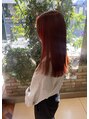 髪質、生え方、骨格に合わせた切りっぱなしロングです。ブリーチ無しカラーイルミナカラー12トーンコーラル、ボンドカラー8トーンオレンジ、PYRを調合しました。
