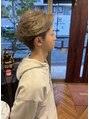 ブリーチ後ボンドカラー14トーンベージュ、10トーンライラックを調合しました。パーマ23ミリ~15ミリのロッドでリバースにワインドしました。