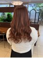 ブリーチ無しカラーです。ボンドカラー14トーンピンク、イルミナカラー12トーンブロッサム、pyrを調合しました。ブリーチ無しでもグレーカバーのお薬を調合する事により白髪みつしっかり染まり理想のカラーを実現出来ます。