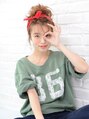 ふんわりお団子にバンダナをプラスしたトレンドスタイル。前髪を一緒に挙げて、残す前髪のバランスを調整すると、さらに今っぽさのある、スケルトンバングに。