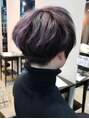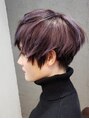 骨格美ショート。輪郭、シルエットをバランスよく見せるショートスタイル。トップだけに入れたスライシングハイライトが、自然な動きを見せるアクセント☆オンカラーはラベンダー。