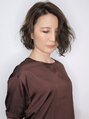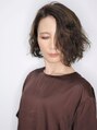 かき上げるボブパーマ。色気のある大人スタイル。光沢のあるカラーでクールな大人カラーに。