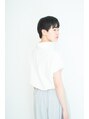 全体はシンプルでスッキリとしたショートスタイル。前髪を少し長めにしてポイントを置きゆるい動きを出しました。