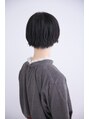 短めのボブスタイル。巻き過ぎず、少女っぽい印象を残すため 毛先を束で遊ばせたナチュラルスタイル。カラーはブラックにして 透明感を引き出すスタイルに。