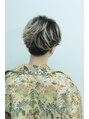 襟足やサイドの耳上はスッキリと刈り上げてオーバーセクションの長い部分に丸みや動きを出す女性らしい ショートスタイル。アレンジせずに ウエットスタイルでモードな仕上げやふわっとした柔らかいパーマスタイルまで遊べるショート。