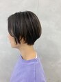 ナチュラルなウエット仕上げのハンサムショート。コテやアイロンも使わずに、ブローしてオイル仕上げのナチュラルスタイル。手ぐしで整えれるところも嬉しいナチュラルさです。