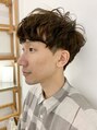 マッシュスタイルのパーマスタイル短めのマッシュスタイルですが、大きくカールをつけて長さを感じるスタイルに。