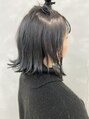 ブリーチ×ダークグレーカラーのボブスタイルです。ブリーチで色味をぬかないときれいに入らないお色味なので暗髪なのにキレイでオシャレです。