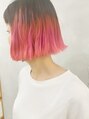 根元はカラーなしの 中間毛先にブリーチ×2 カラー×1のトリプルカラーデザイン。毛先をしっかりぬくことでかわいいピンクもしっかり入ります