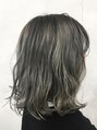 全体ブリーチ履歴がある髪に、ホワイトハイライトを細く入れて全体はくすみたっぷりの濃いグレーに!ブリーチしてるからこそできるカラーで個性を♪