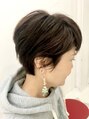 耳にかけやすいショートスタイル。首元はすっきりで全体的にコンパクトなシルエット。カラーはほんのりピンクで艶やかさと柔らかさで女性らしく仕上げてます。