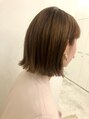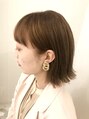 パツッとしたラインのミニボブ。このラインで外ハネが可愛いいポイント。カラーは春らしくオレンジ系で艶と柔らかさをプラス。耳にかけてミニボブに仕上げるのが春らしいスタイルのポイント(^.^)