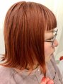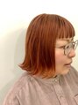 鮮やかなオレンジで春カラー。キレイな色で透明感溢れる感じがテンション高まりますね♪カットは、パツッとボブ。前髪はその雰囲気に合わせて短くテイストで合わせました。