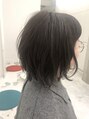 透明感あるアッシュ系のカラーで柔らかい雰囲気のミディアムスタイル。ほんのり明るいってのがポイントです。クセを生かして外ハネにスタイルに♪